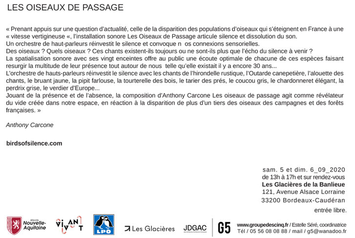 Le Groupe des Cinq donne carte blanche à l'artiste sonore Anthony Carcone pour la création d'une "ponctuation sonore" sur le site du Château d'eau préfigurant des futures manifestations qui se tiendront au sein de l'édifice une fois la résidence Offline créée.