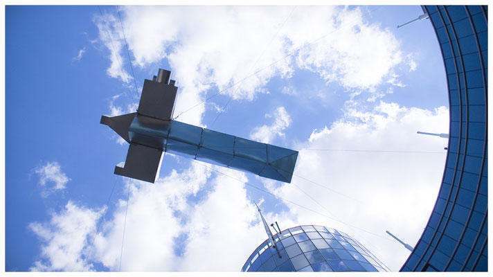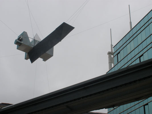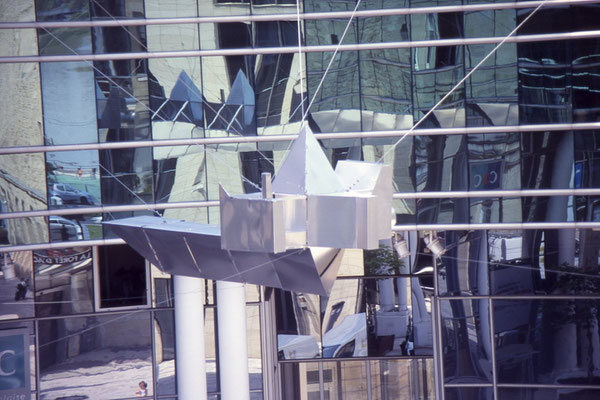 Dans le cadre de l'expositon collective "Sculptures à la ville", l'artiste Joseph Da Silva a été choisi afin de concevoir la maquette taille réelle d'un satellite spatial à Bordeaux. Frabriqué en aluminium pour une question de poids et de maléabilité, ce modèle est conçu comme une plate-forme spatiale avec des laboratoires scientifiques de recherche.