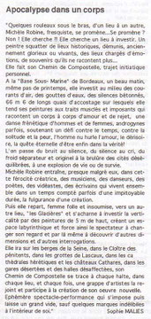 Michèle Robine, artiste plasticienne, a conçu et produit, avec l'aide d'artistes de toutes les disciplines (danse, mise en scène, musique, création lumière...), une exposition et un spectacle aux Glacières sur le thème de l' "Apocalypse dans un corps".