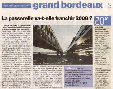 Jean de Giacinto, président de l'association et architecte, a impliqué son agence dans la réflexion d'un projet viable pour sauver la passerelle Eiffel de Bordeaux tout en lui trouvant une nouvelle utilité. Ce projet vise à en faire un pont de franchissement pour piétons et vélos. Le pont serait également un lieu d'échange culturel ainsi qu'un lieu d'intérêt pour les touristes.